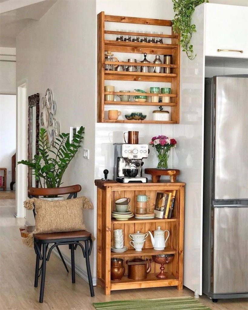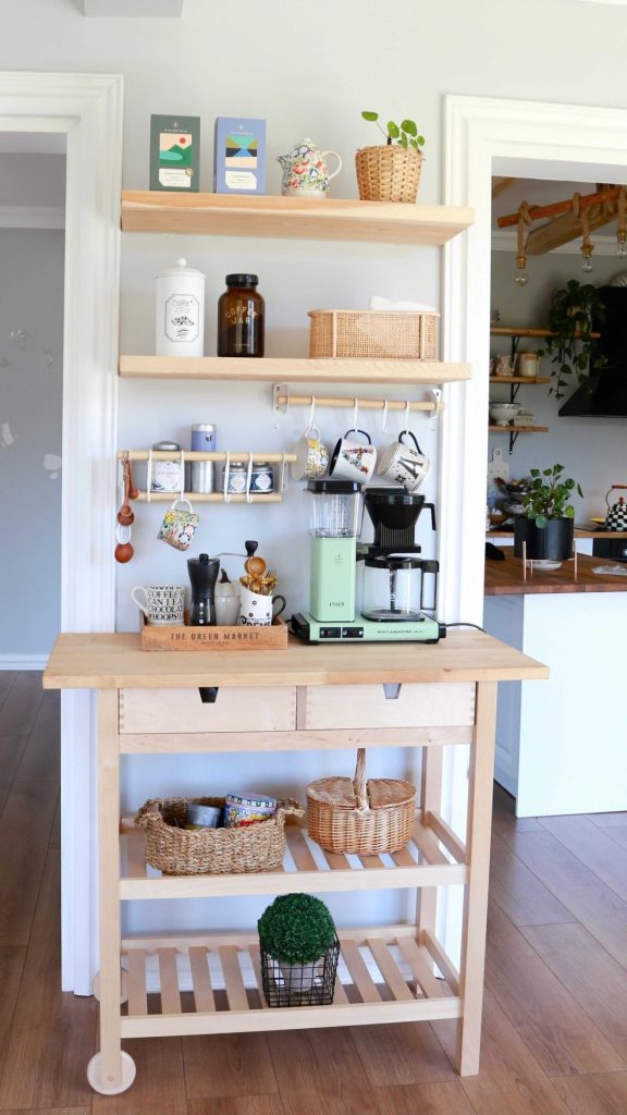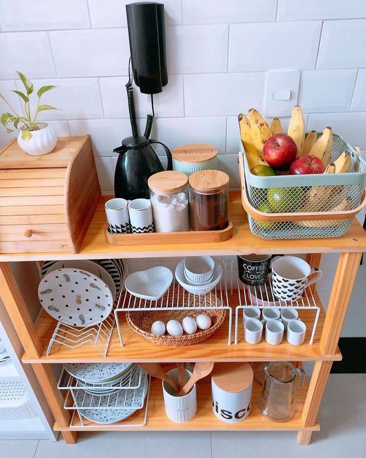 - Prateleiras abertas no lugar de parte dos armários superiores