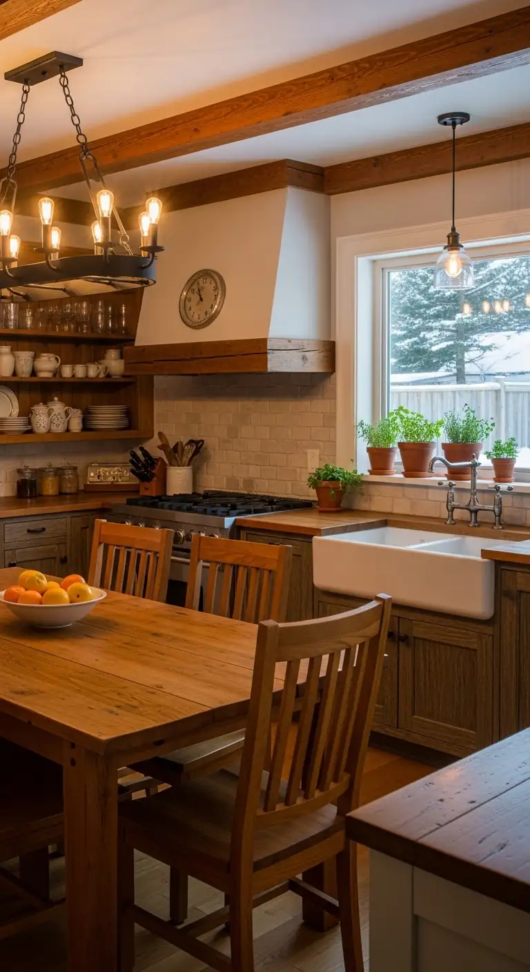 A iluminação é essencial para destacar uma Cozinha com Detalhes em Madeira e Estilo Aconchegante.